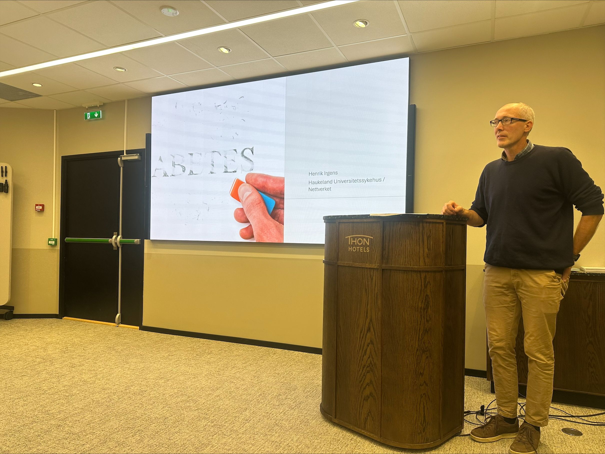 Trond Flægstad fortalte om etableringen av Forskningspost for barn ved Universitetssykehuset Nord-Norge i Tromsø.