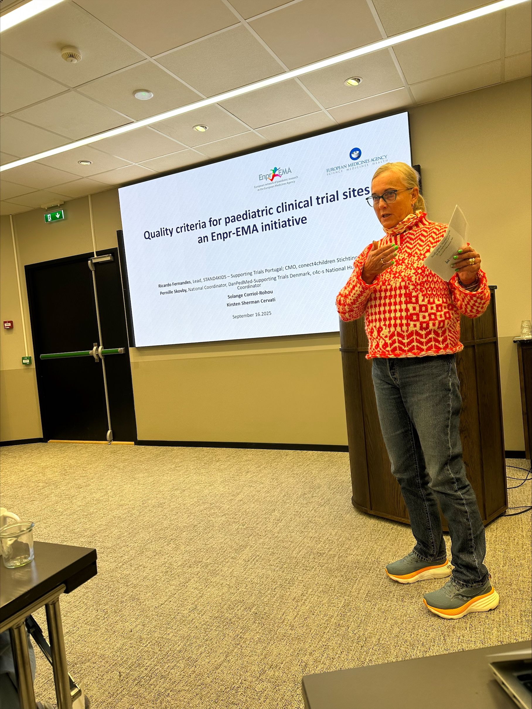 Pernille Skovby fra DanPedMed og TrialNation i Danmark er leder for arbeidsgruppen ‘Site quality criteria for pediatric trial units’ i regi av Enpr-EMA (European Network of Paediatric Research at the EMA). Pernille orienterte om arbeidet i gruppen. Konklusjonen er at Europa ikke er tjent med en sertifiseringsordning for forskningsposter for barn, men at norske studiesentre under NorPedMed-paraplyen bør markedsføre seg bedre gjennom gode og informative nettsider. NorPedMed tok dette ad notam og skal bruke en del tid og penger framover på oppgradering av hjemmesidene sine.