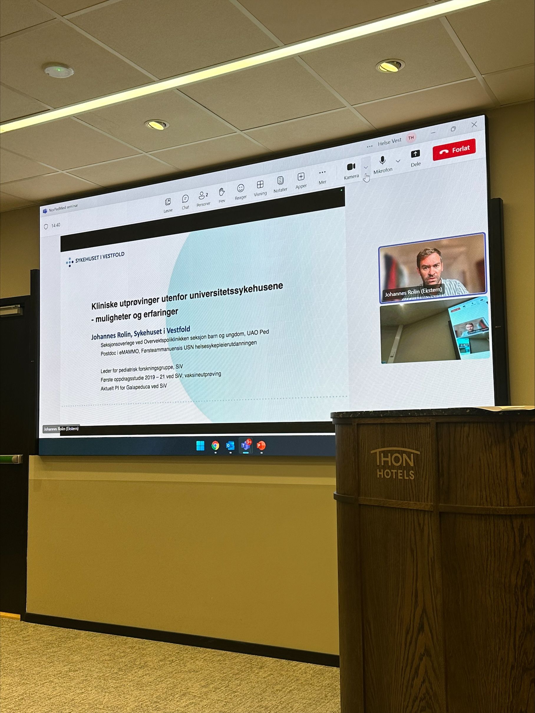Olve Moldestad, leder for Nyfødtscreeningen og ‘Senter for presisjonsmedisin innen sjeldne diagnoser’ fortalte om Partnerskap for sjeldne sykdommer som er et samarbeidsprosjekt mellom helsevesenet og legemiddelindustrien. Olve fremhevet betydningen av strukturelle modeller som NorPedMed og NordicPedMed, som gjør det mulig for Norge og Norden å framstå som en felles rekrutteringsarena for kliniske utprøvinger innenfor «sjelden-feltet».