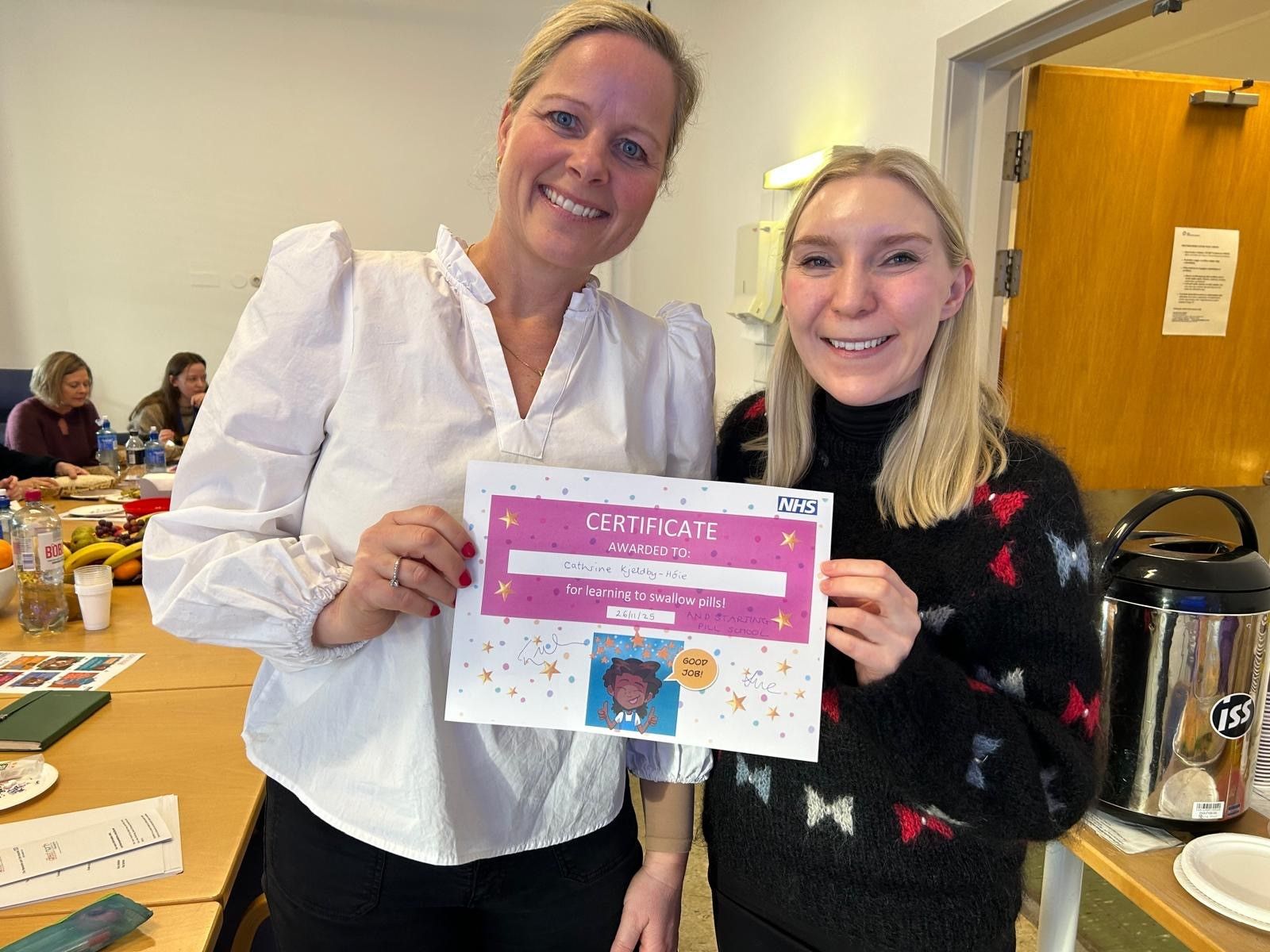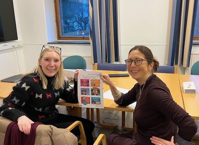 Cathrine Kjeldby-Høie, farmasøyt og initiativtaker, arrangerte «Pill school»-workshop i Oslo i slutten av november. Og det med selebert besøk fra dem som virkelig kan dette: barnelege Emma Lim fra Newcastle, som har lært barn å svelge siden 1990-tallet, og professor og farmasøyt Alice McCloskey fra universitetet i Liverpool.