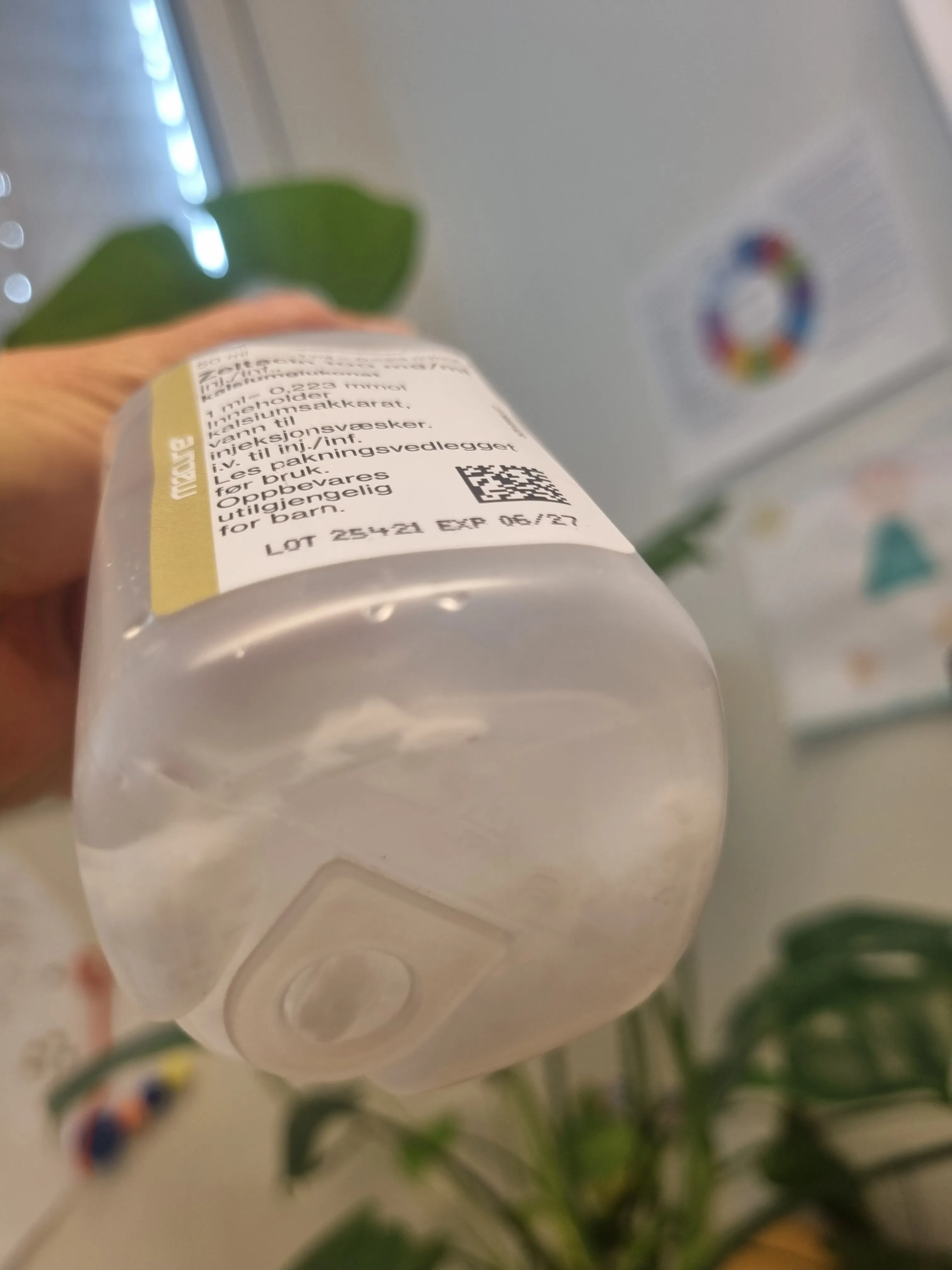 Dersom du opplever slik utfelling, skal ikke denne beholderen brukes. Det bør gis beskjed om at dette har skjedd, gjerne med tilbakemelding til sykehusapoteket, slik at man sikrer at hendelsen blir dokumentert og vurdert, og at nødvendige tiltak kan iverksettes – både lokalt og nasjonalt.